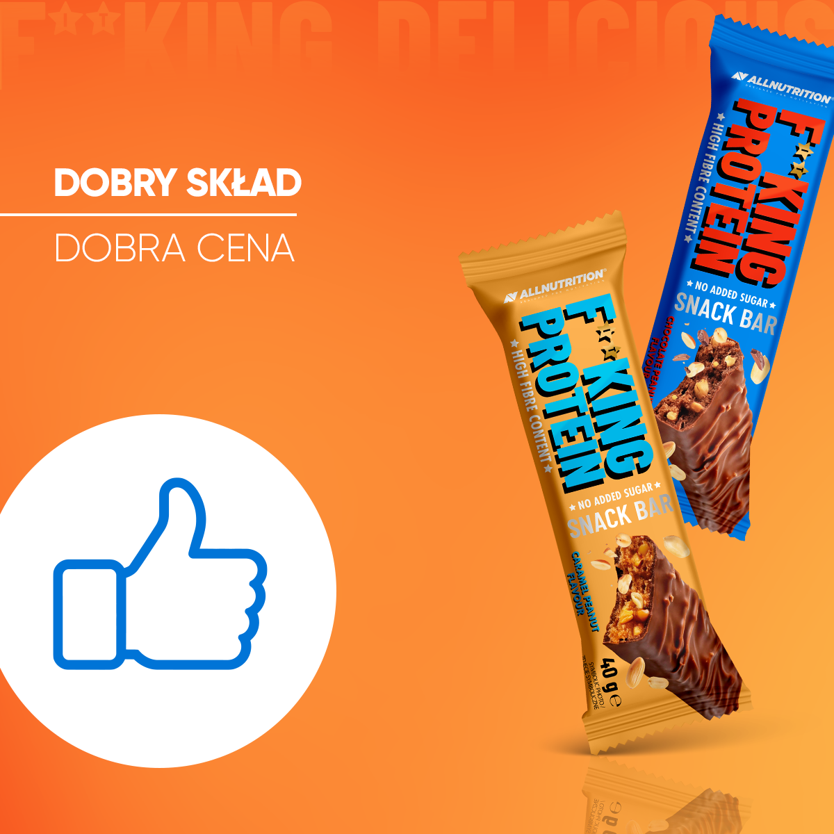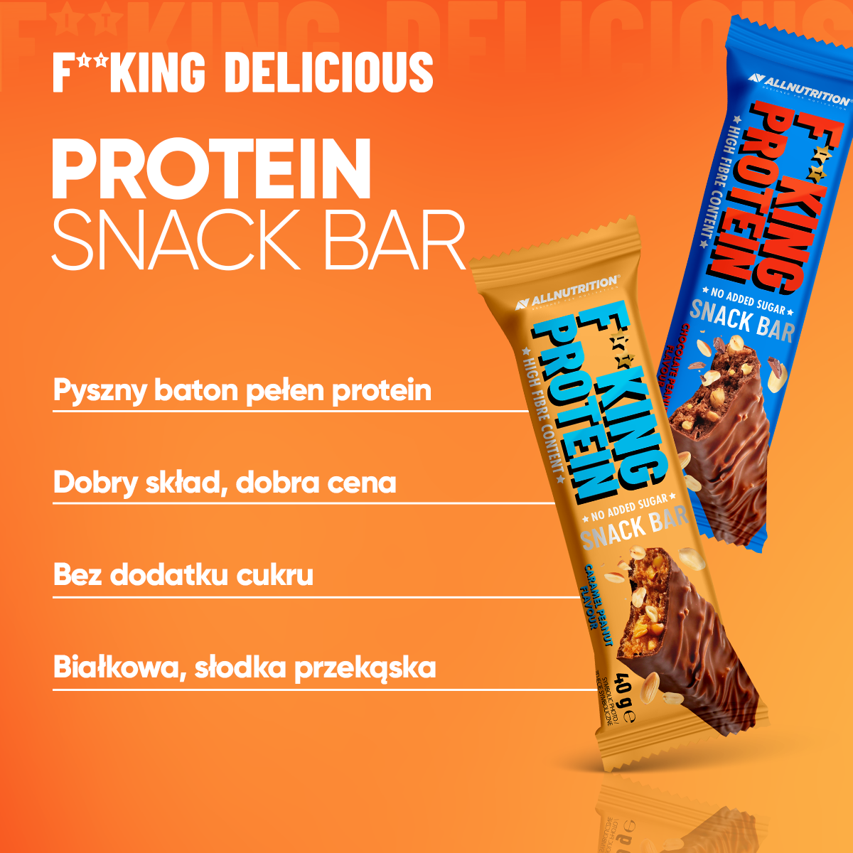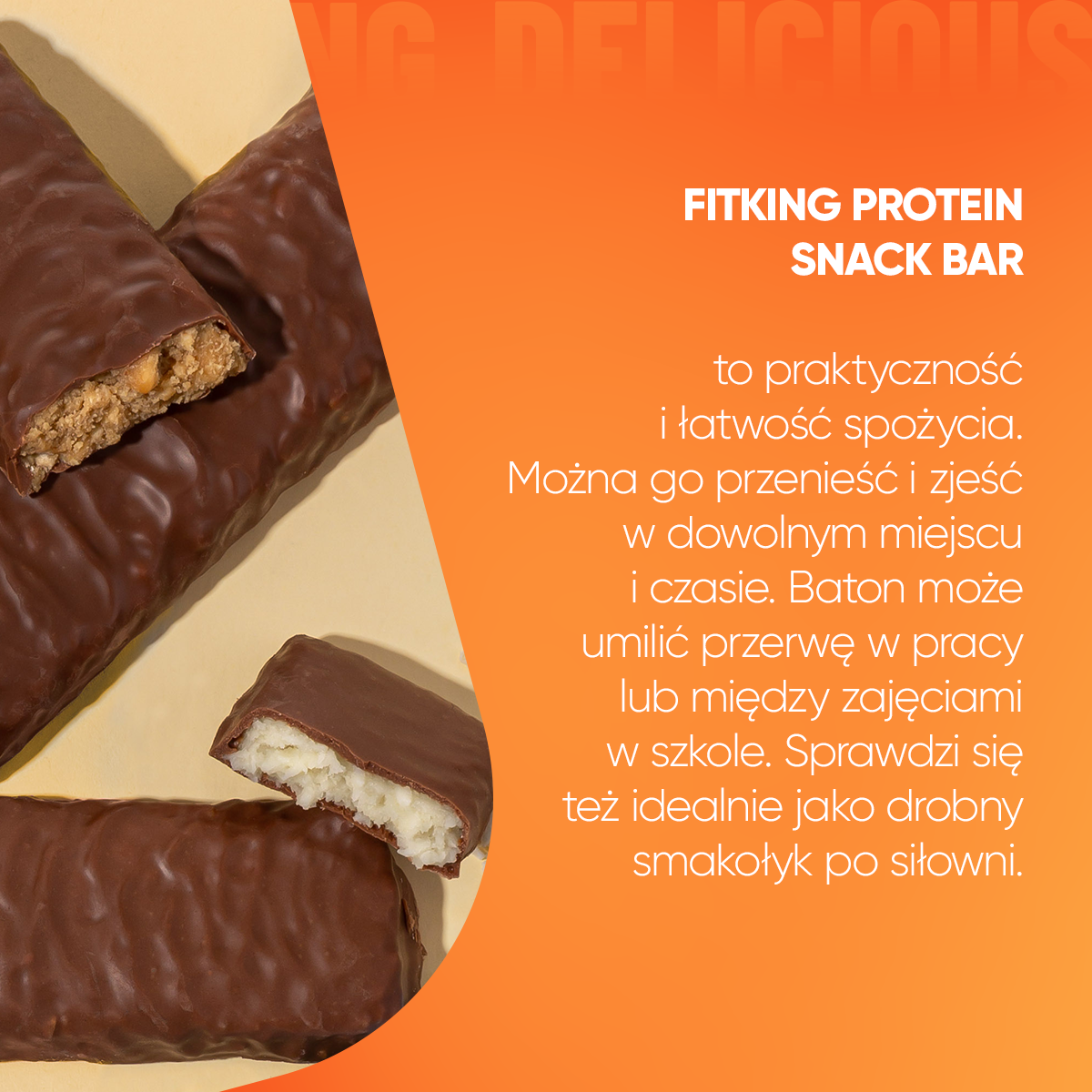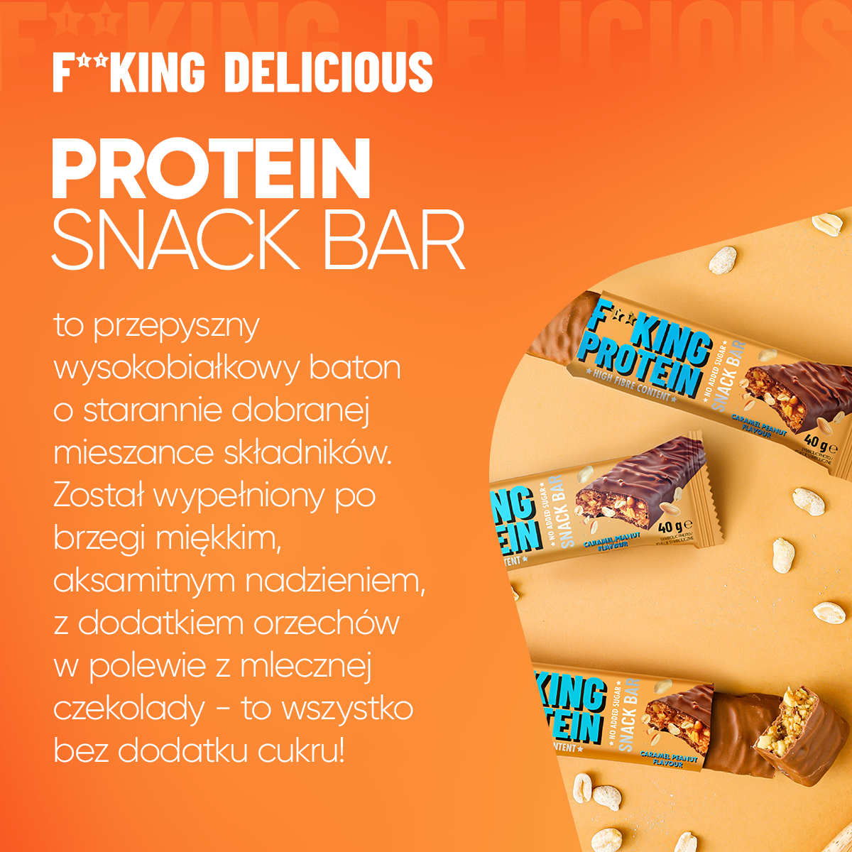 czekolada mleczna 25 % (substancja słodząca: maltitole, tłuszcz kakaowy, mleko pełne w proszku, miazga kakaowa, emulgator: lecytyny [z soi ], naturalny aromat waniliowy), orzeszki arachidowe 16 %, koncentrat białek serwatkowych [z mleka ], miazga z orzeszków arachidowych , oligofruktoza, substancja utrzymująca wilgoć: glicerol, wysokobiałkowa czekolada mleczna 7 % (koncentrat białek serwatkowych (serwatka w proszku [z mleka ], emulgator: lecytyny [z soi] ), tłuszcz kakaowy, substancja słodząca: maltitole, miazga kakaowa, mleko w proszku odtłuszczone, mleko w proszku pełne, tłuszcz mleczny, emulgator: lecytyny, ekstrakt z wanilii), hydrolizat kolagenu wołowego 6 %, chrupka ryżowa (mąka ryżowa), tłuszcz kakaowy, kakao o obniżonej zawartości tłuszczu, inulina, emulgator: lecytyny [z soi ], aromat, sól