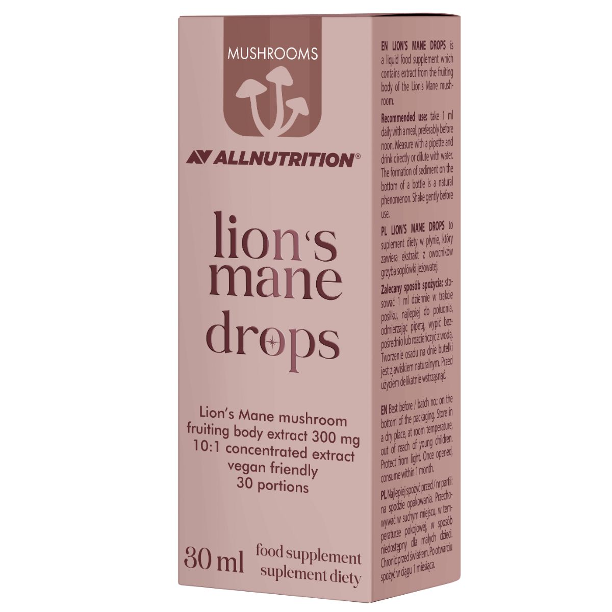 ALLNUTRITION MUSHROOMS LION'S MANE DROPS to wysokiej jakości suplement diety w formie wygodnych kropli, który dostarcza wysokiej ekstrakt z owocników Lion’s Mane, czyli soplówki jeżowatej. Stanowi doskonałe uzupełnienie codziennej diety osób aktywnych, które cenią naturalne składniki i świadomą suplementację.