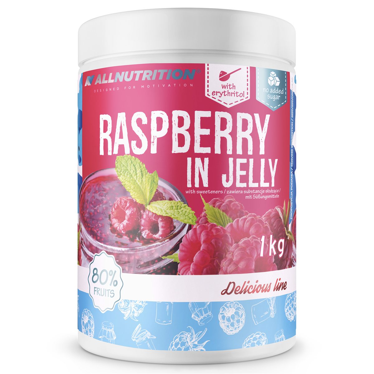 ALLNUTRITION RASPBERRY IN JELLY to wyjątkowo smaczna frużelina malinowa bez dodatku cukru, wzbogacona o całe kawałki owoców. Produkt został stworzony z myślą o osobach dbających o swoją sylwetkę, które nie chcą rezygnować z odrobiny słodkiej przyjemności w diecie.