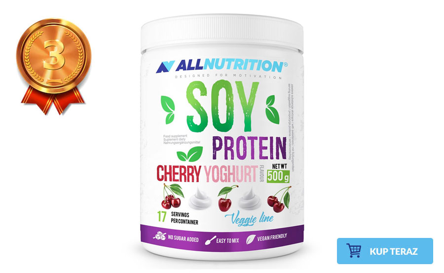 ALLNUTRITION SOY PROTEIN to przedstawiciel klasycznych odżywek przeznaczonych dla wegan i wegetarian, gdyż jest to odżywka zawierająca izolat białka sojowego. Jeżeli uważnie czytałeś/aś początek tego rankingu, pamiętasz, że białko sojowe nie posiada negatywnych cech większości białek roślinnych - występowania ograniczających aminokwasów. Ponownie zatem mamy do czynienia z białkiem kompletnym.